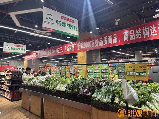 走进位于南昌高新区艾湖路的旺中旺超市,“平价农副产品专营区(直销区)”的标识格外醒目。货架上,包菜、大白菜、西蓝花等蔬菜码放得整整齐齐,不时有顾客拿起,仔细比对价格。